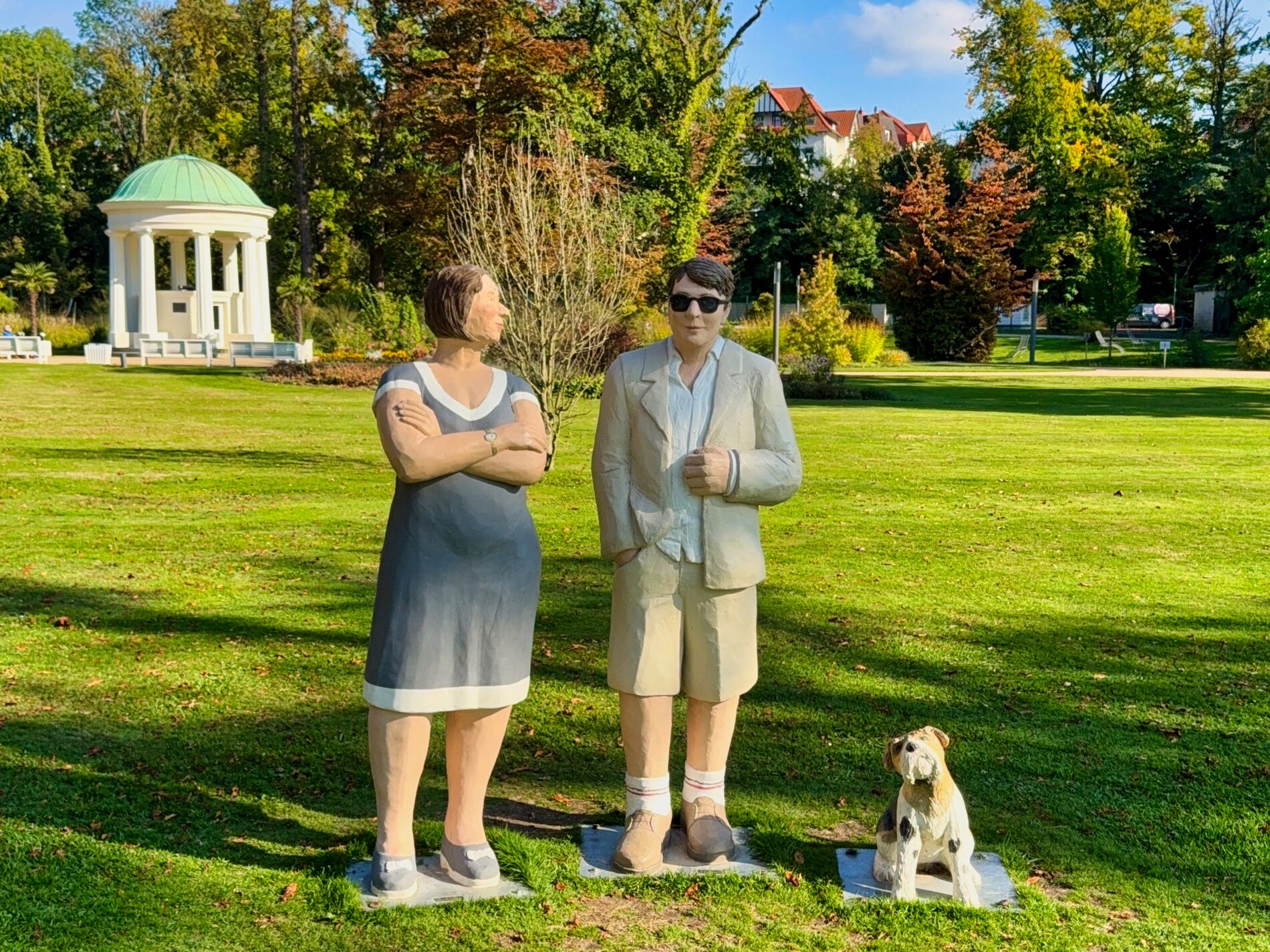 Heute war ein ganz besonderer Tag für uns, denn wir haben zum ersten Mal in diesem Jahr den Kurpark besucht. Die Sonne schien, die Blumen blühten in den schönsten Herbstfarben. Besonders erfreut waren wir darüber, dass die „Alltagsmenschen“ immer noch im Park zu bewundern waren. Letztes Jahr hatten wir extra eine Reise nach Höxter unternommen, um diese außergewöhnlichen Skulpturen zu sehen.